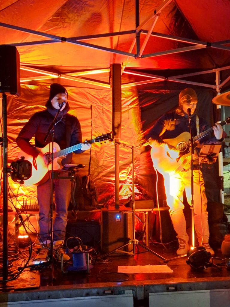 Wegen des großen Andranges waren manche Verpflegungsstände bereits nach einigen Stunden ausverkauft. Angeboten wurden neben Pizza, Backofenzelten, frischem Bauernbrot oder Debreziner im Bierteig auch andere Schmankerl wie z. B. Raclettekäse auf frischem Bauernbrot. Selbstverständlich gehörte auch, einem Weihnachtsmarkt entsprechend, eine breite Getränkepalette bis hin zu Hochprozentigem zu den Angeboten. Bei Töpfer- und Holzwaren, Gießkeramik und Dekoware konnten sich die Besucher auch bereits zu Weihnachtsgeschenken inspirieren lassen. Um das Lagerfeuer in der Mitte des Platzes gab es auch Sitzgelegenheiten und beheizte Stehtische. Dem Publikum hat es auf jeden Fall gefallen, die letzten Gäste feierten bis weit nach Mitternacht. Des Erfolges wegen darf man sich wohl auf eine Neuauflage der „Grattersdorfer Dorfweihnacht“ im nächsten Advent schon freuen.
